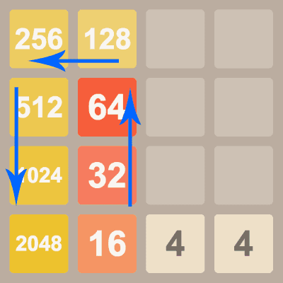 向大数反方向合并,即向"64"合并,这样能比方法1更快的将最大数放在左上角;