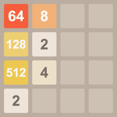 把小数合并到最大数,即向"2"合并,直到达到"512";